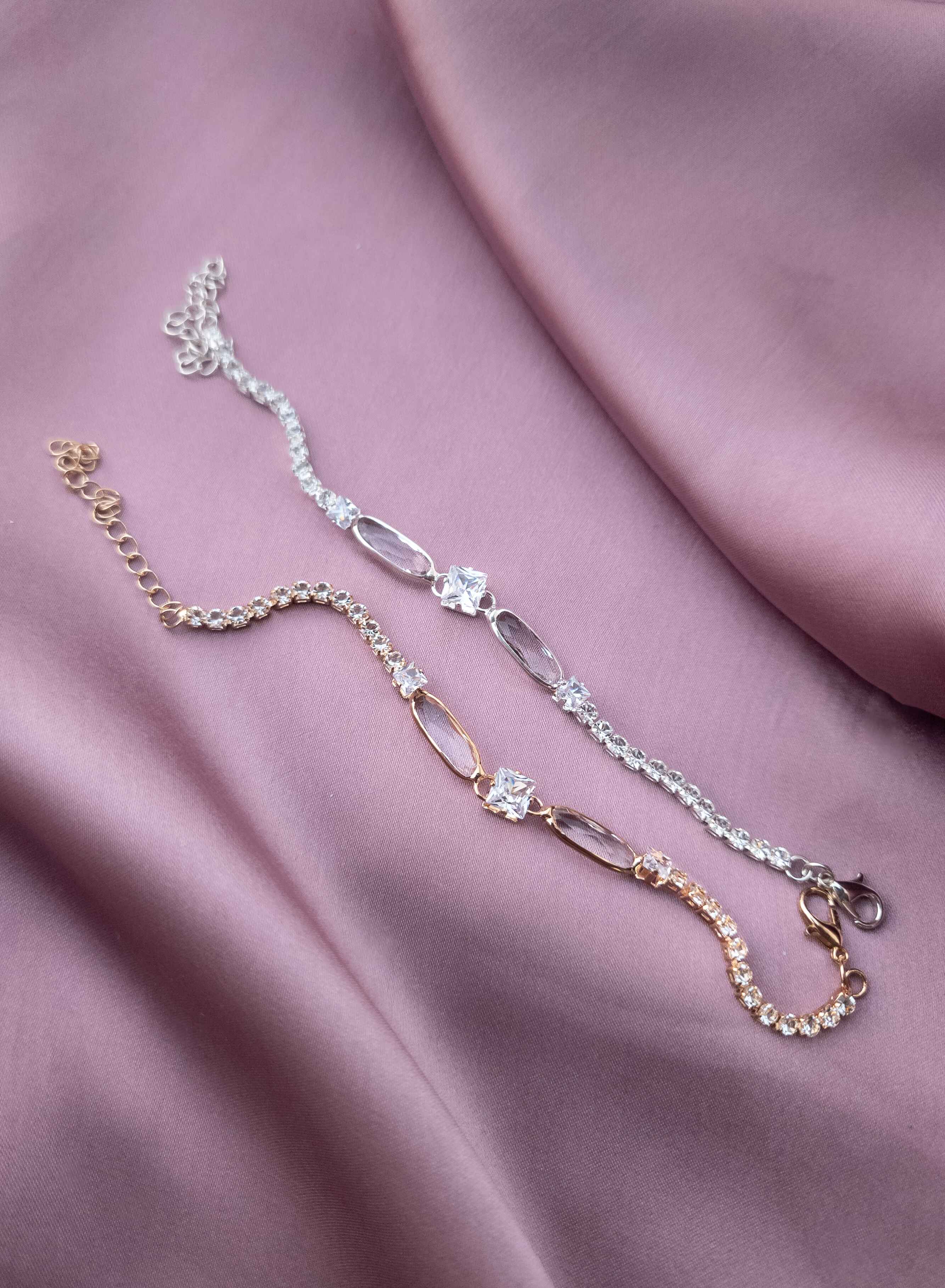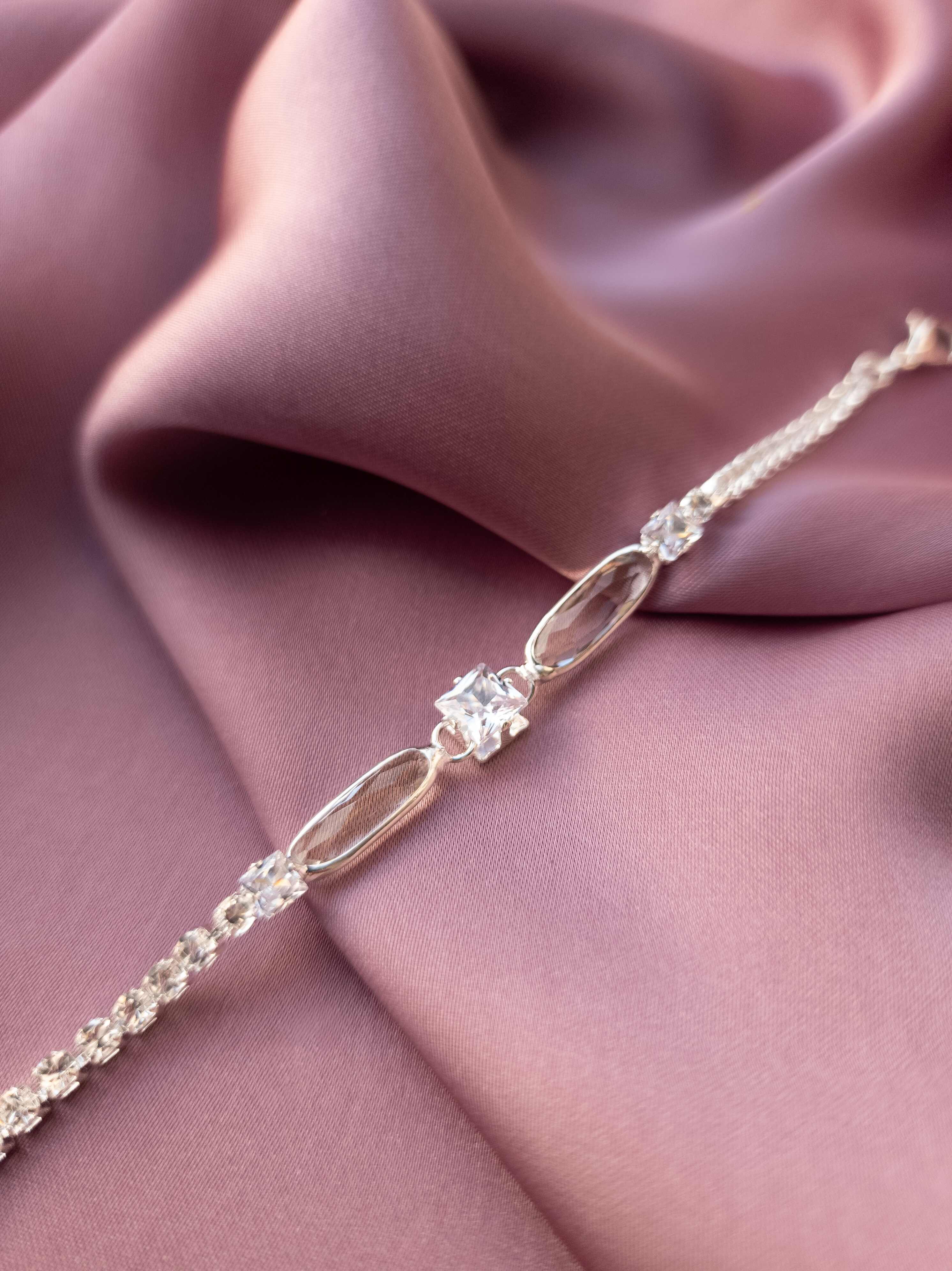The Diamond Cube Bracelet captures the perfect balance of brilliance and sophistication. With its alternating crystal cut stones and open oval links, this bracelet gives elegance while keeping a modern minimalist charm.